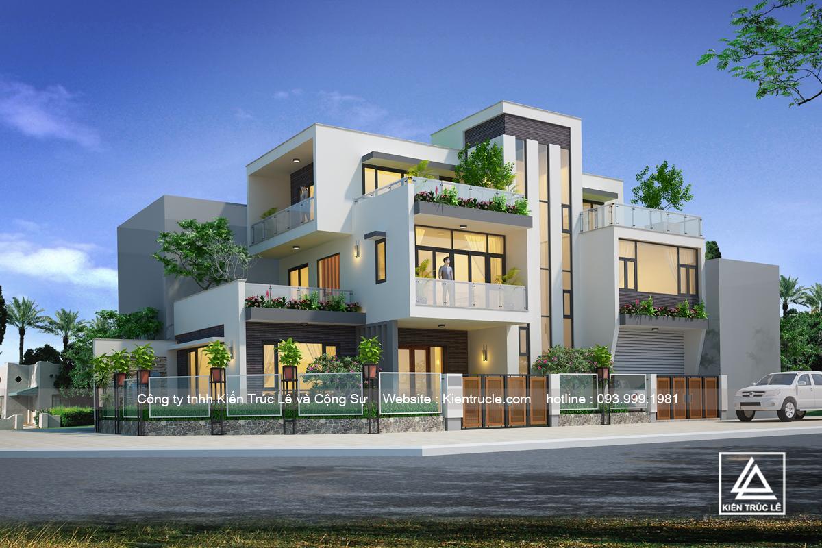 Mời các bạn tham khảo thêm ở góc độ khác của mẫu thiết kế nhà 3 tầng hiện đại đẹp này của Kiến Trúc Lê.